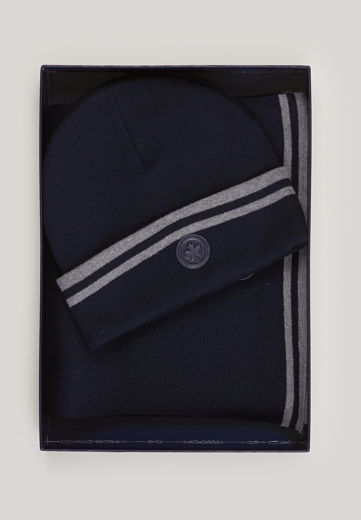 River Woods Box Scarf And Hat Dark Navy For Men | Blue