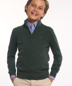 River Woods Boys Custom Fit Merino Mock Neck Sweater Forest Mix | Khaki