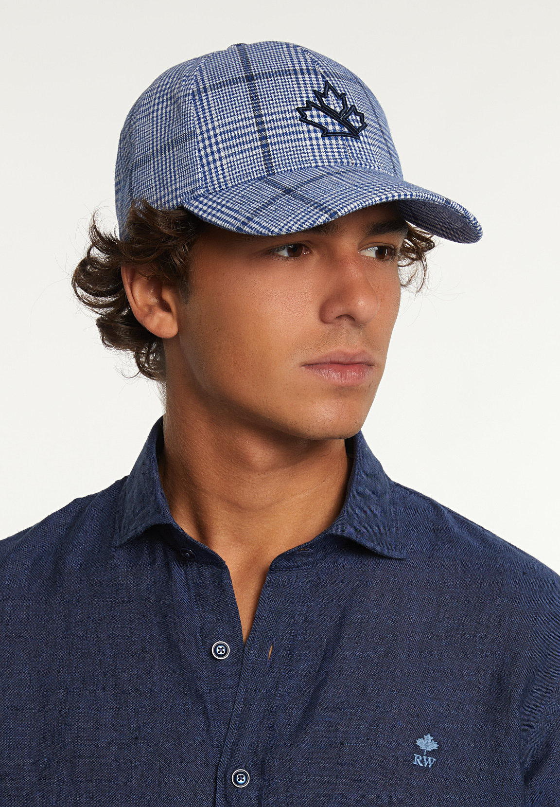 River Woods Men’s Cotton-linen Checked Cap Blue/white | Blue