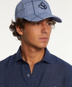 River Woods Men’s Cotton-linen Checked Cap Blue/white | Blue