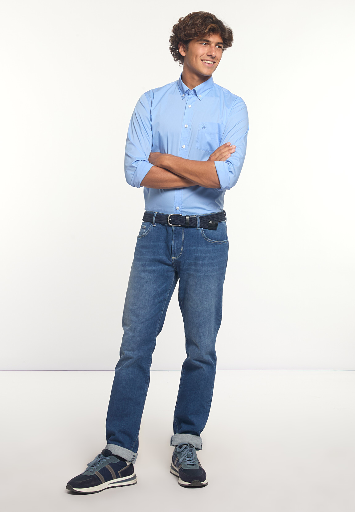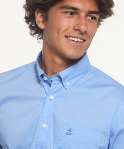 River Woods Men’s Custom Fit Performance Stretch Shirt Chest Pocket Blue | Blue