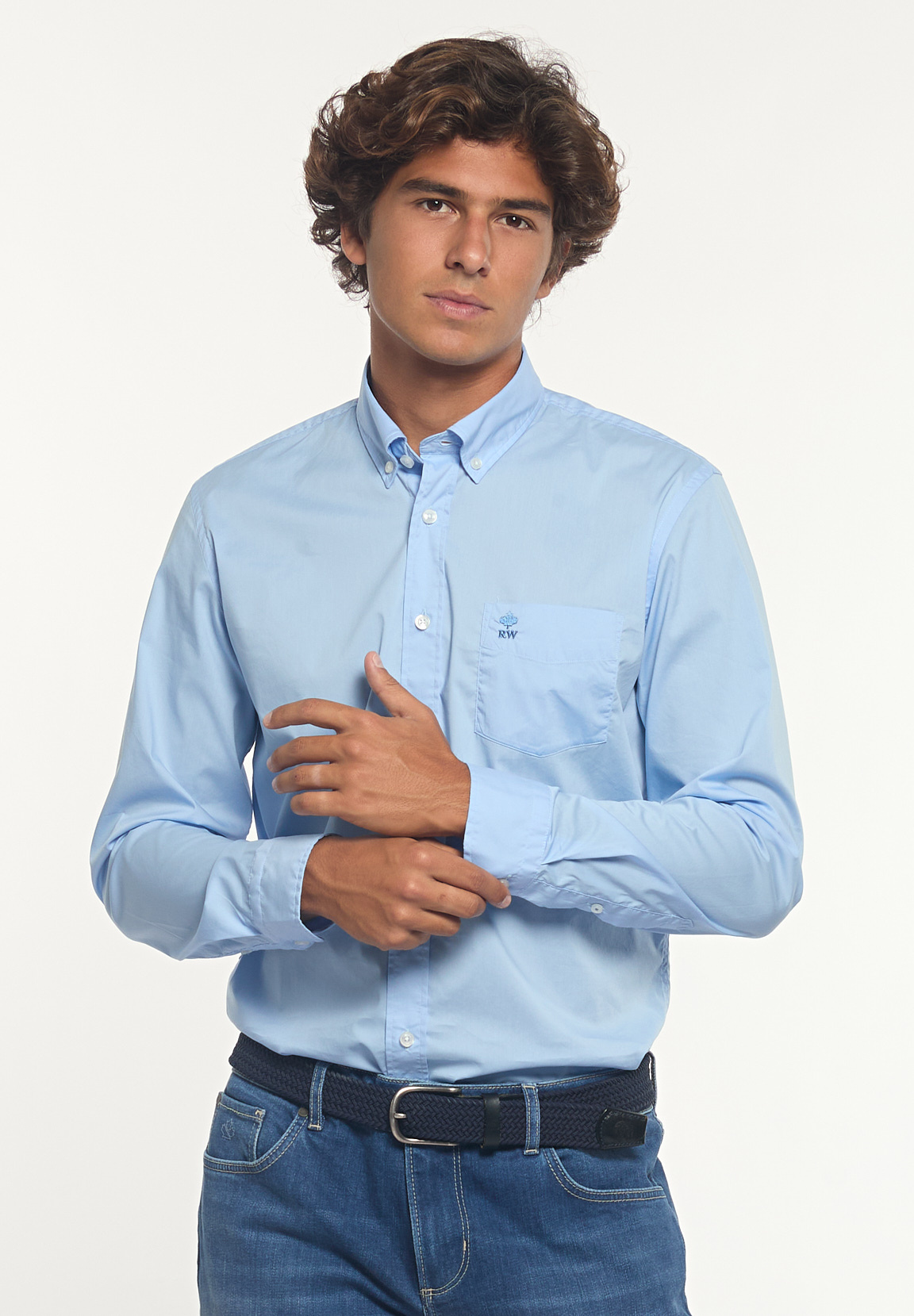 River Woods Men’s Custom Fit Performance Stretch Shirt Chest Pocket Blue | Blue