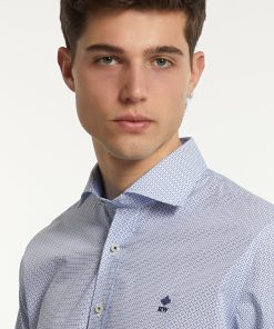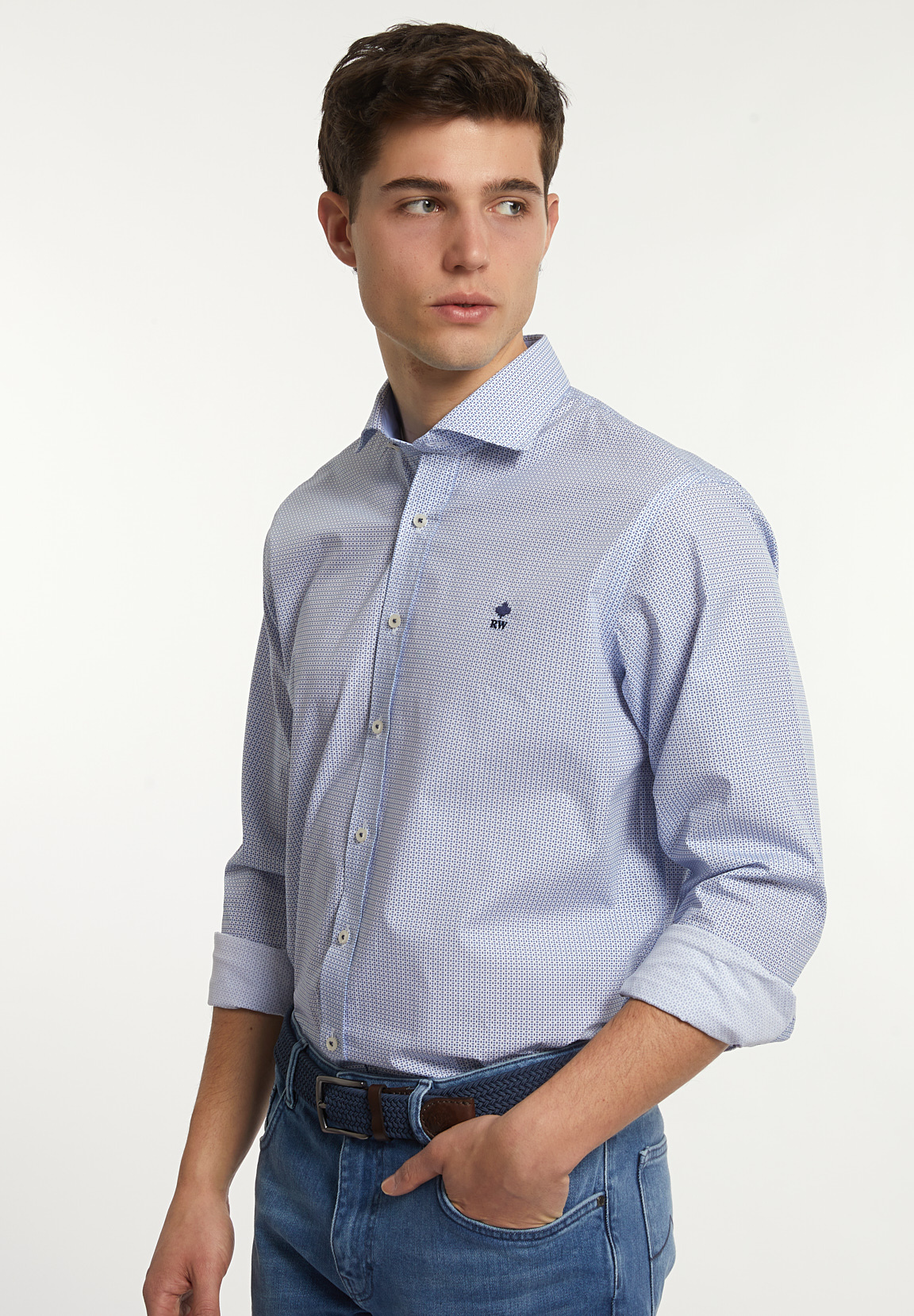 River Woods Men’s Regular Fit Cotton Fantasy Shirt Blue-white | Blue