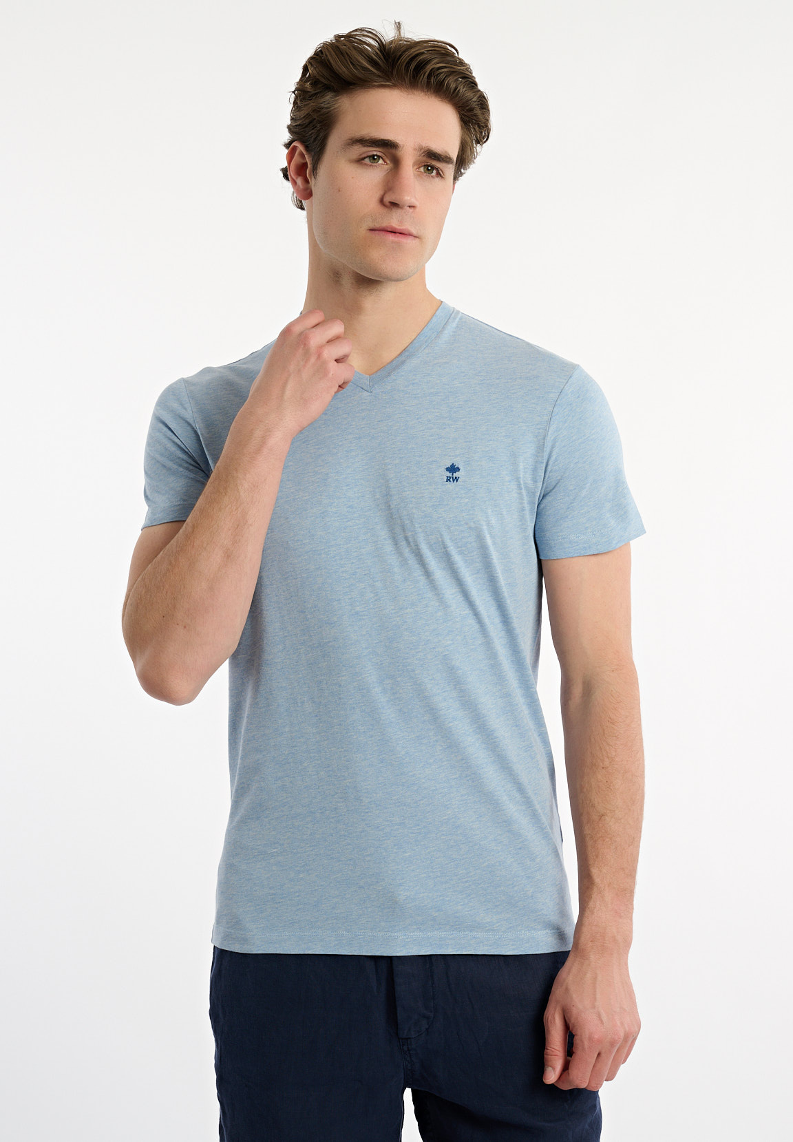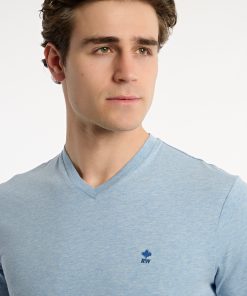 River Woods Men’s Slim Fit Basic Pima Cotton V-neck T-shirt Soft Frost Mix | Blue