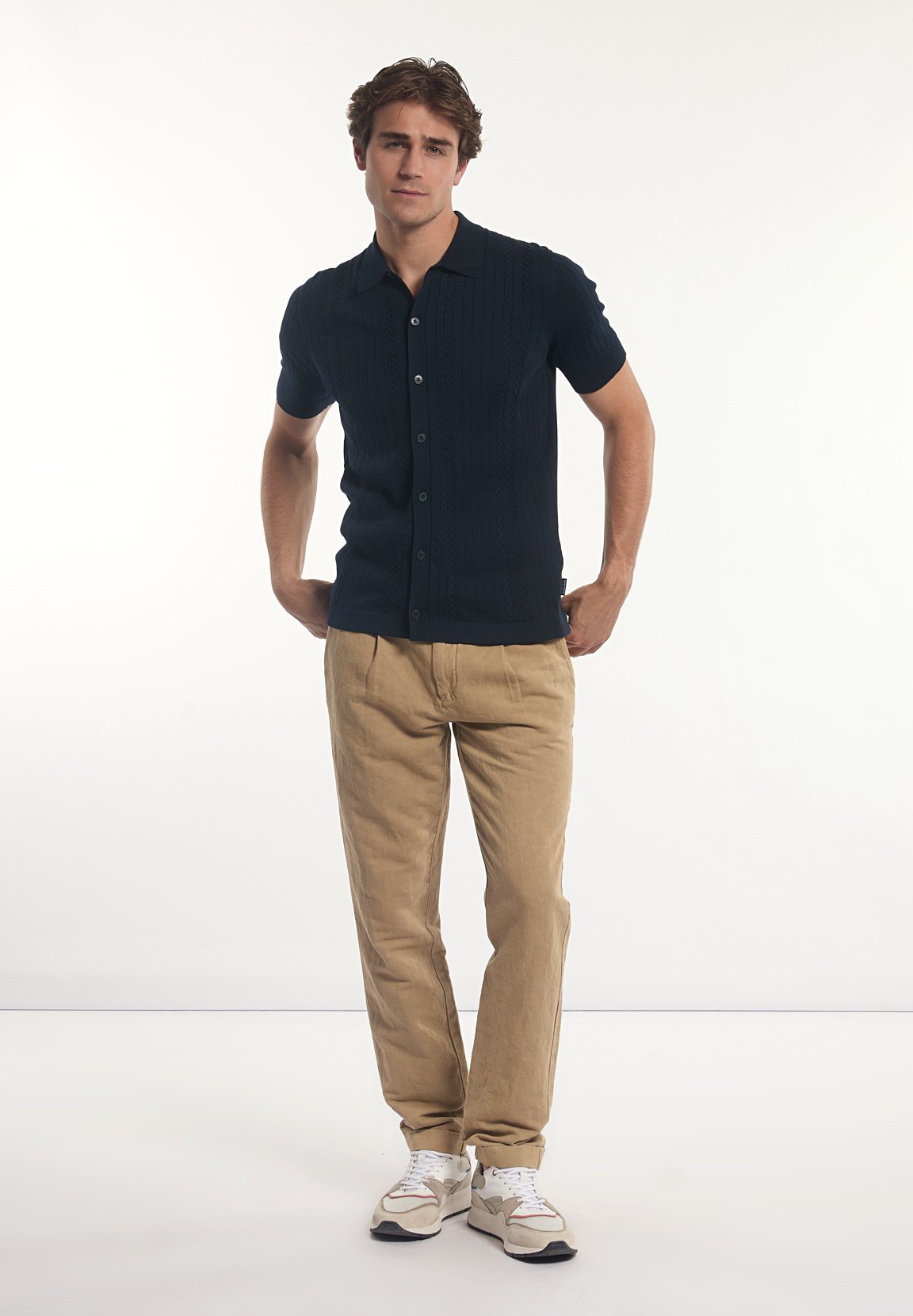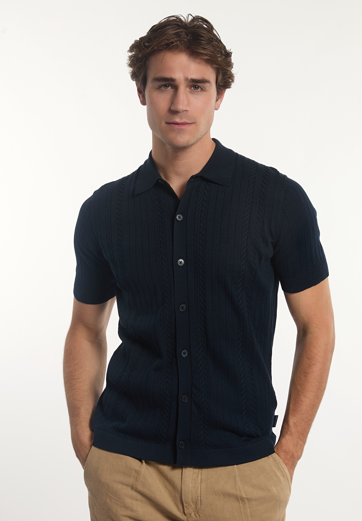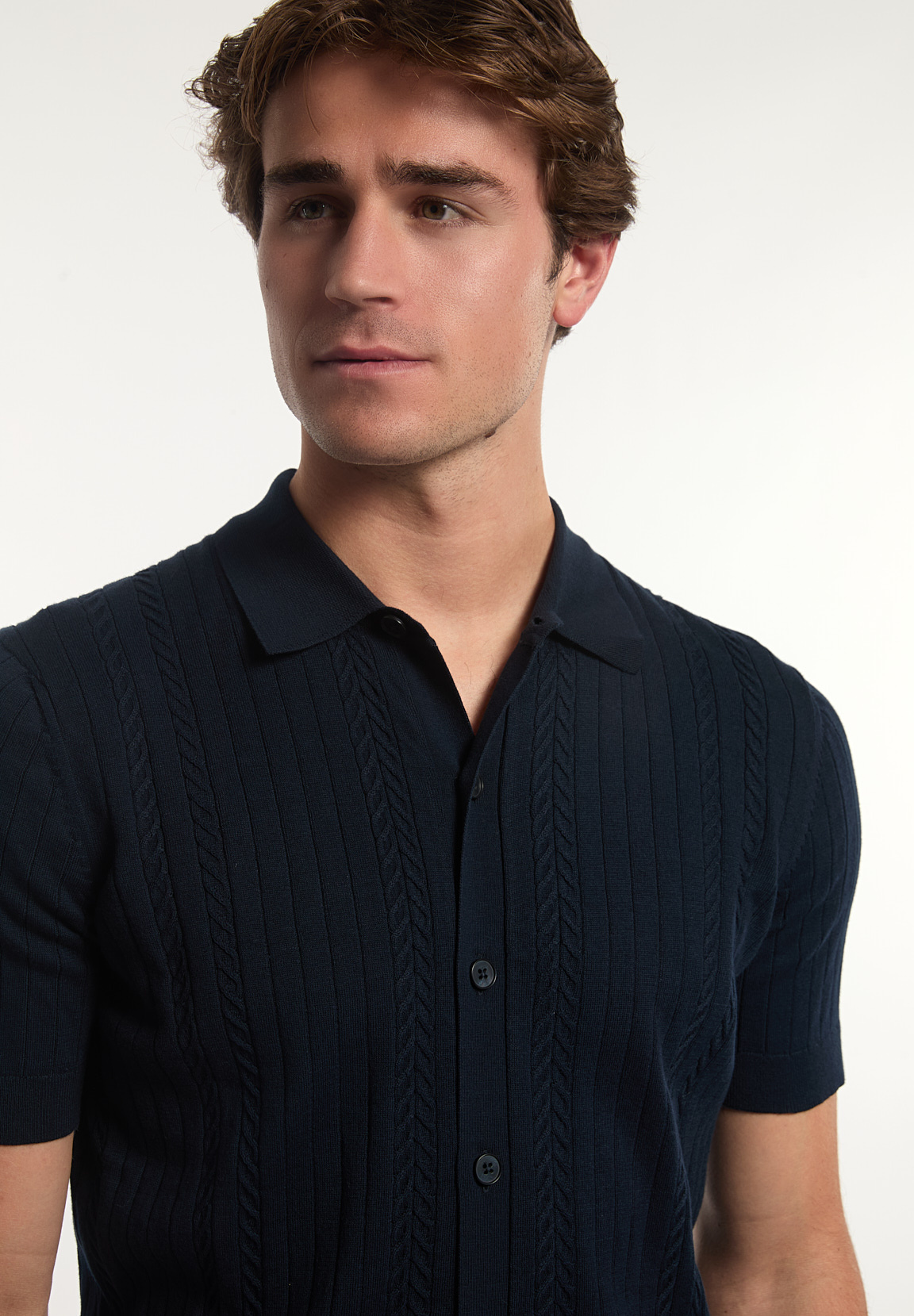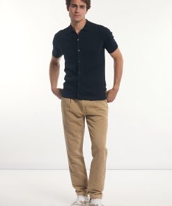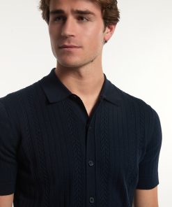 River Woods Men’s Slim Fit Cotton Buttoned Cable Cardigan Dark Navy | Blue