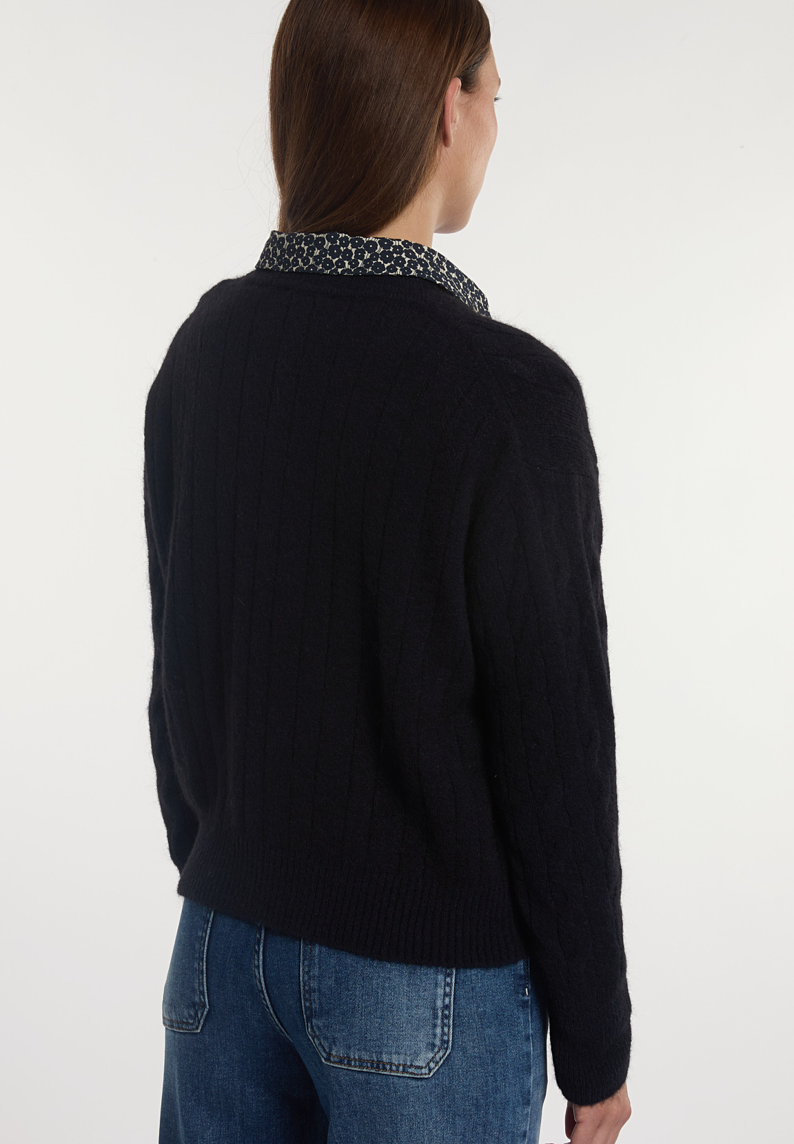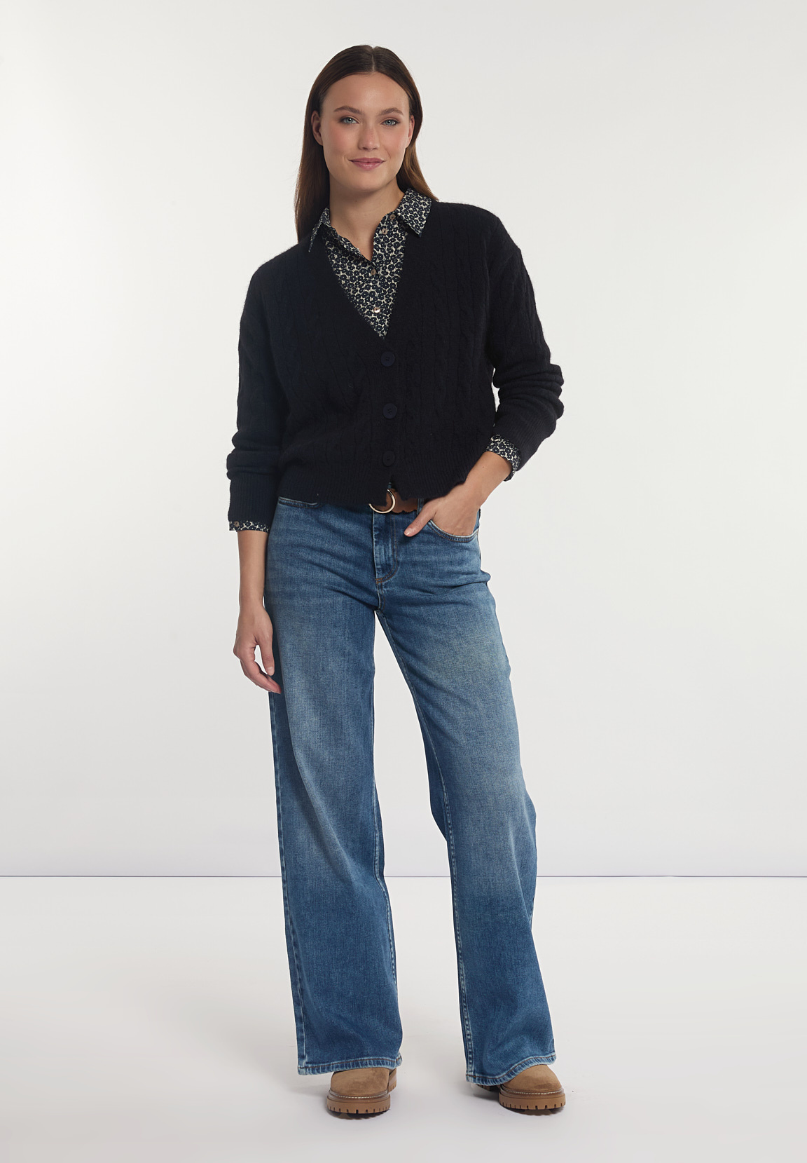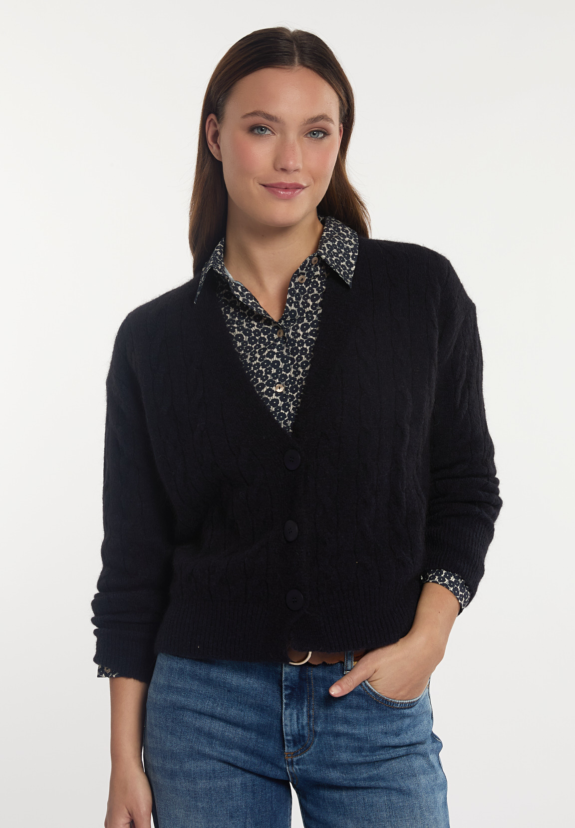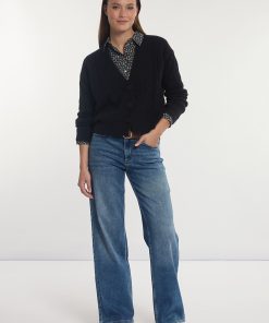 River Woods Women’s Alpaca-wool Buttoned V-neck Cable Cardigan Navy | Blue