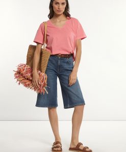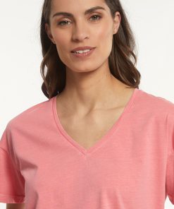 River Woods Women’s Cotton Basic Loose V-neck T-shirt Pink | Pink