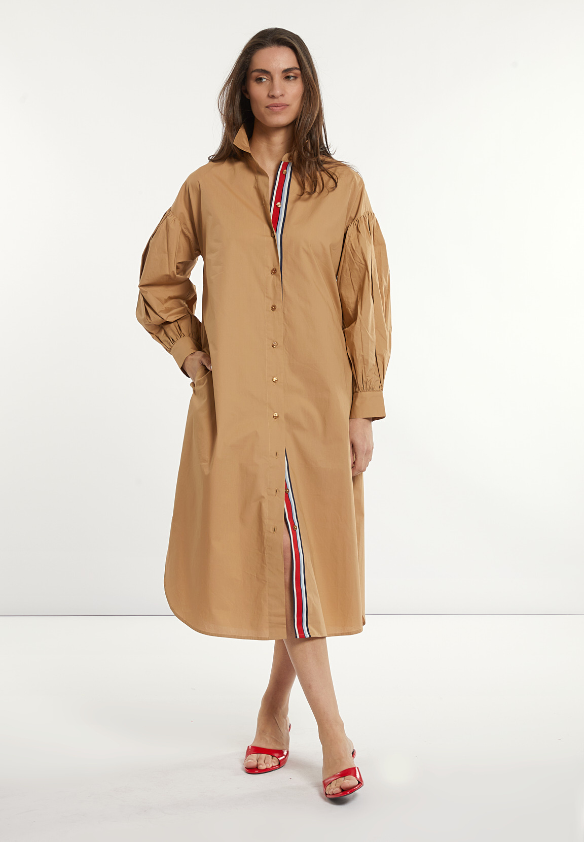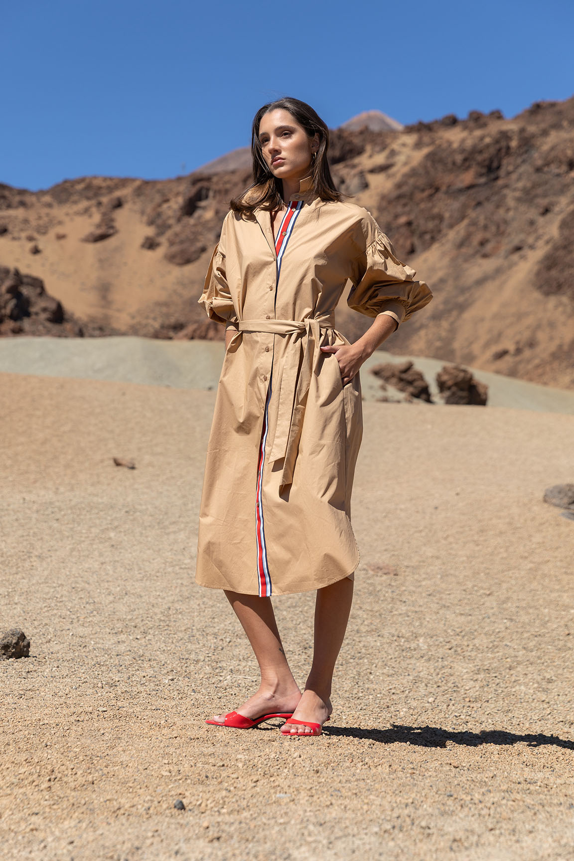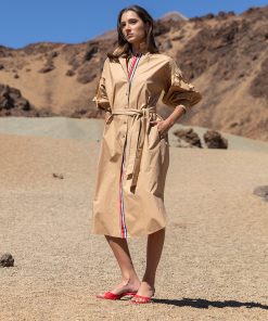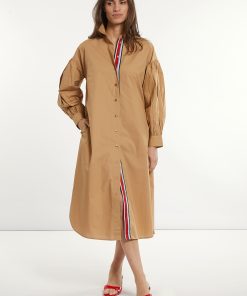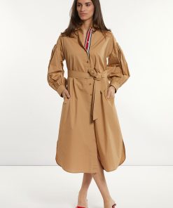 River Woods Women’s Cotton Belted Dress Balloon Sleeves Beige | Beige