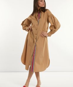 River Woods Women’s Cotton Belted Dress Balloon Sleeves Beige | Beige