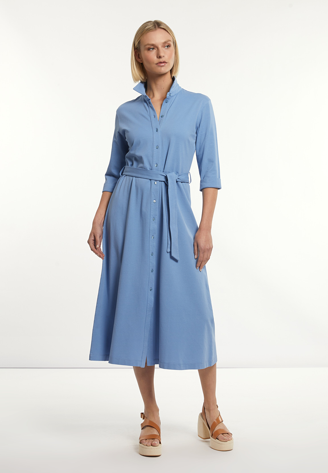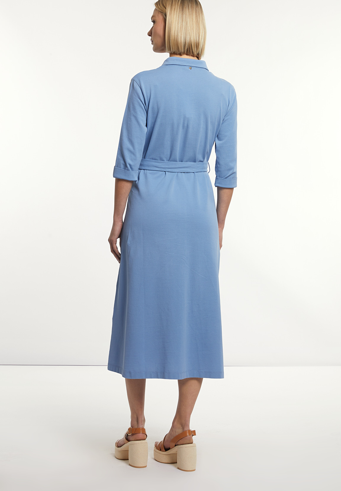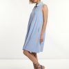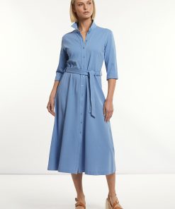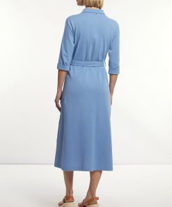 River Woods Women’s Cotton Belted Polo Dress 3/4 Sleeves Blue | Blue
