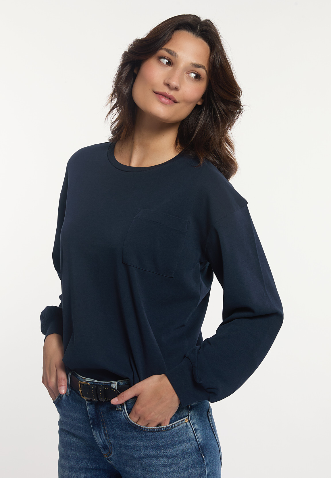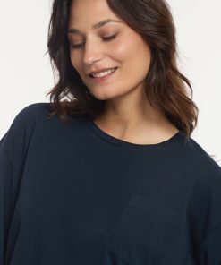River Woods Women’s Cotton Crew Neck T-shirt Chest Pocket Blue | Blue