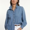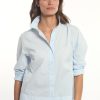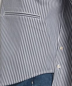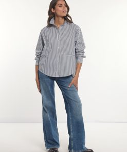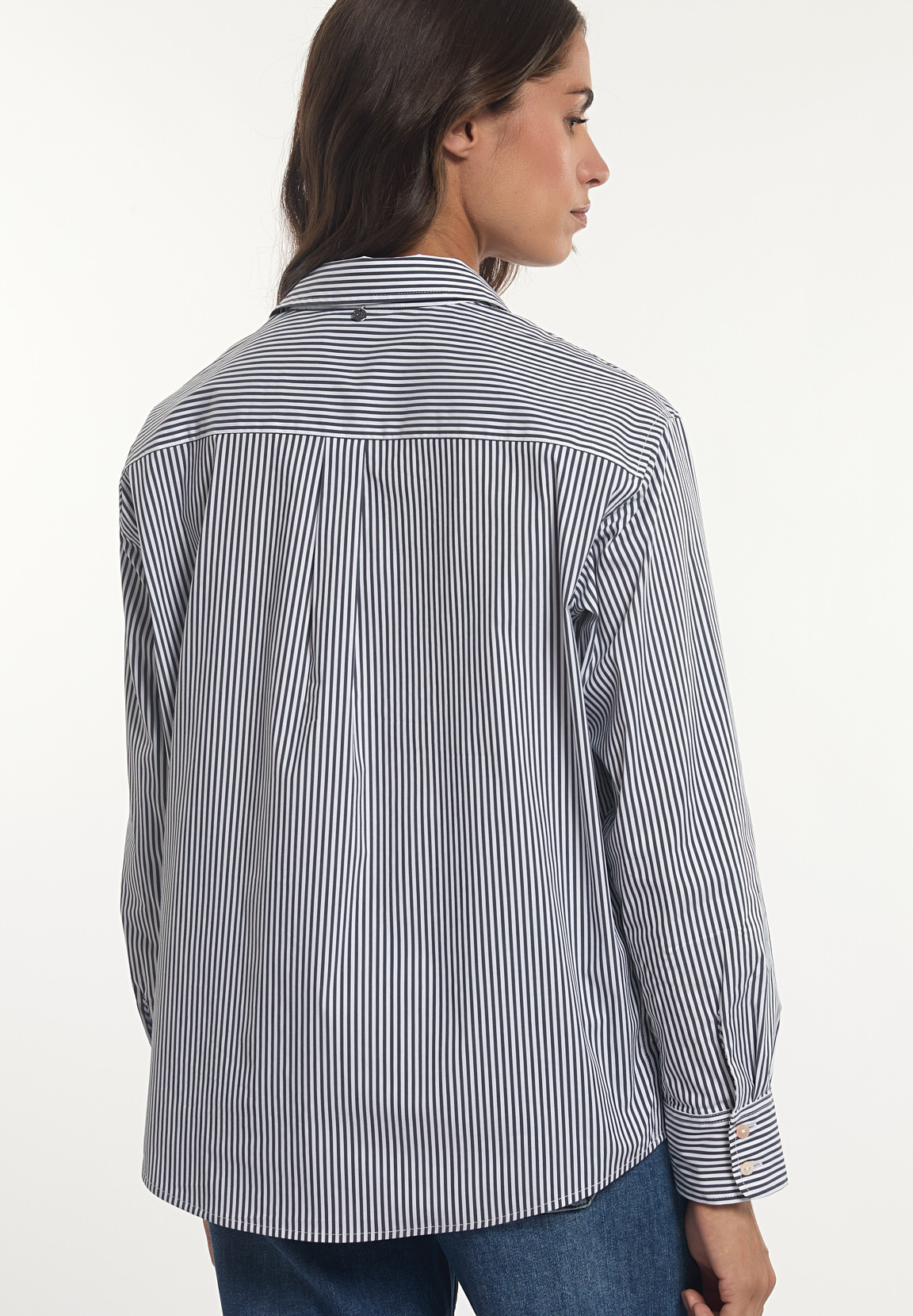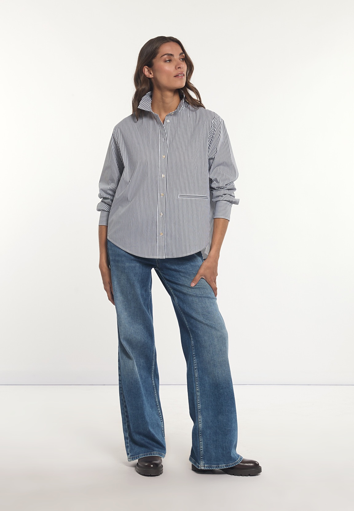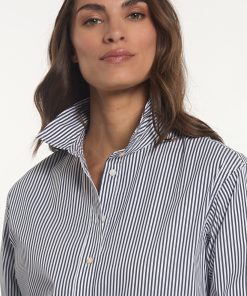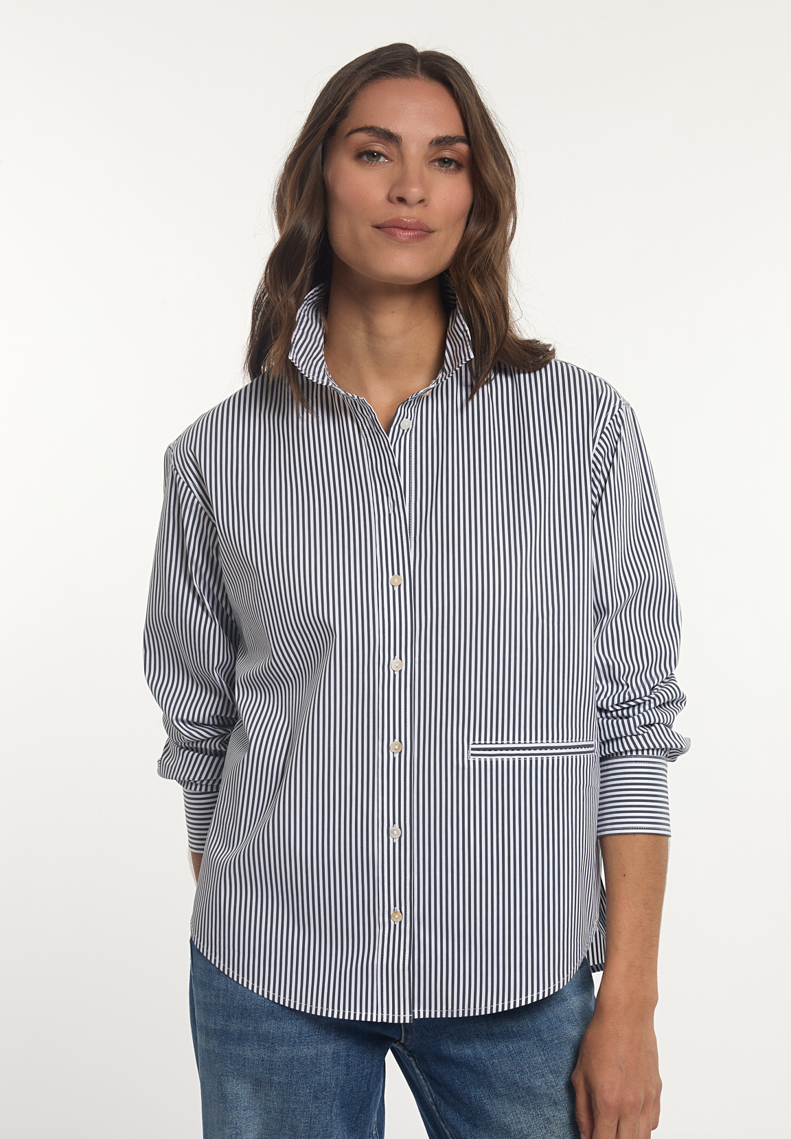 River Woods Women’s Cotton Loose Striped Blouse Applied Pocket Blue/white | Blue