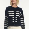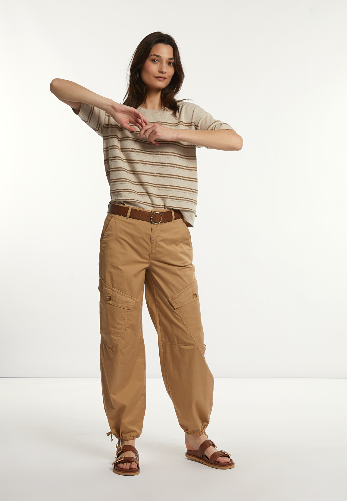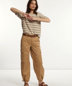 River Woods Women’s Cotton Striped Glitter Sweater Short Sleeves Beige | Beige
