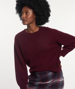 River Woods Women’s Merino Wool Crew Neck Sweater Fancy Sleeves Bordeaux | Red