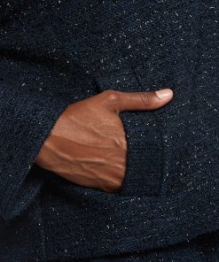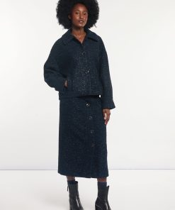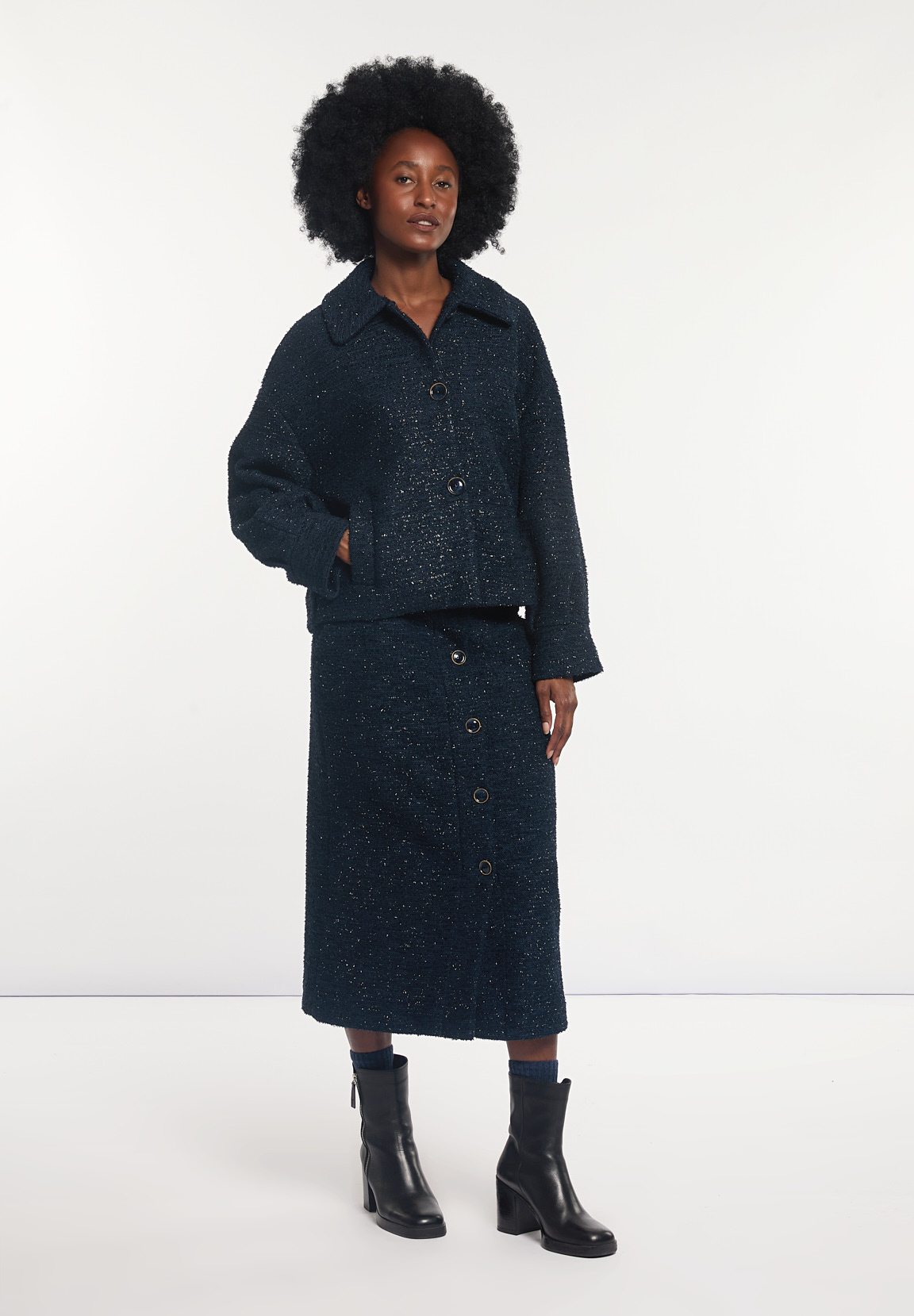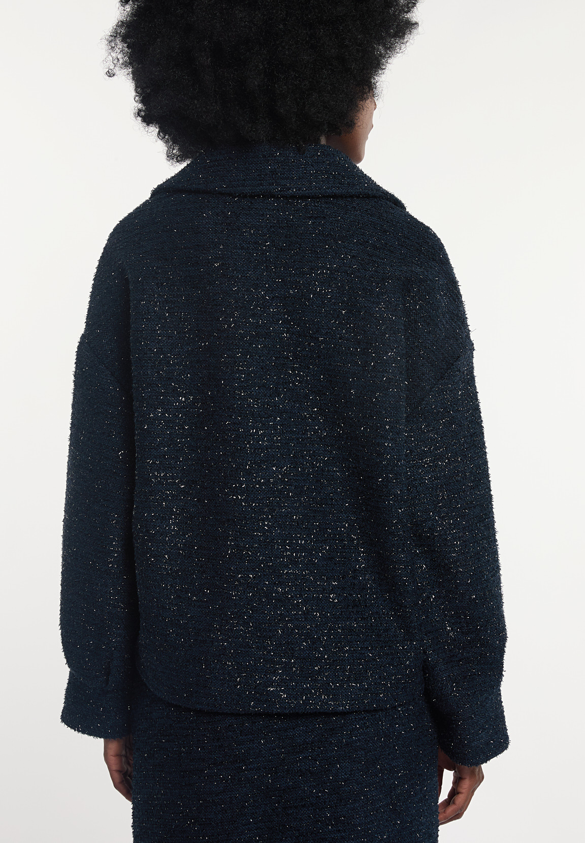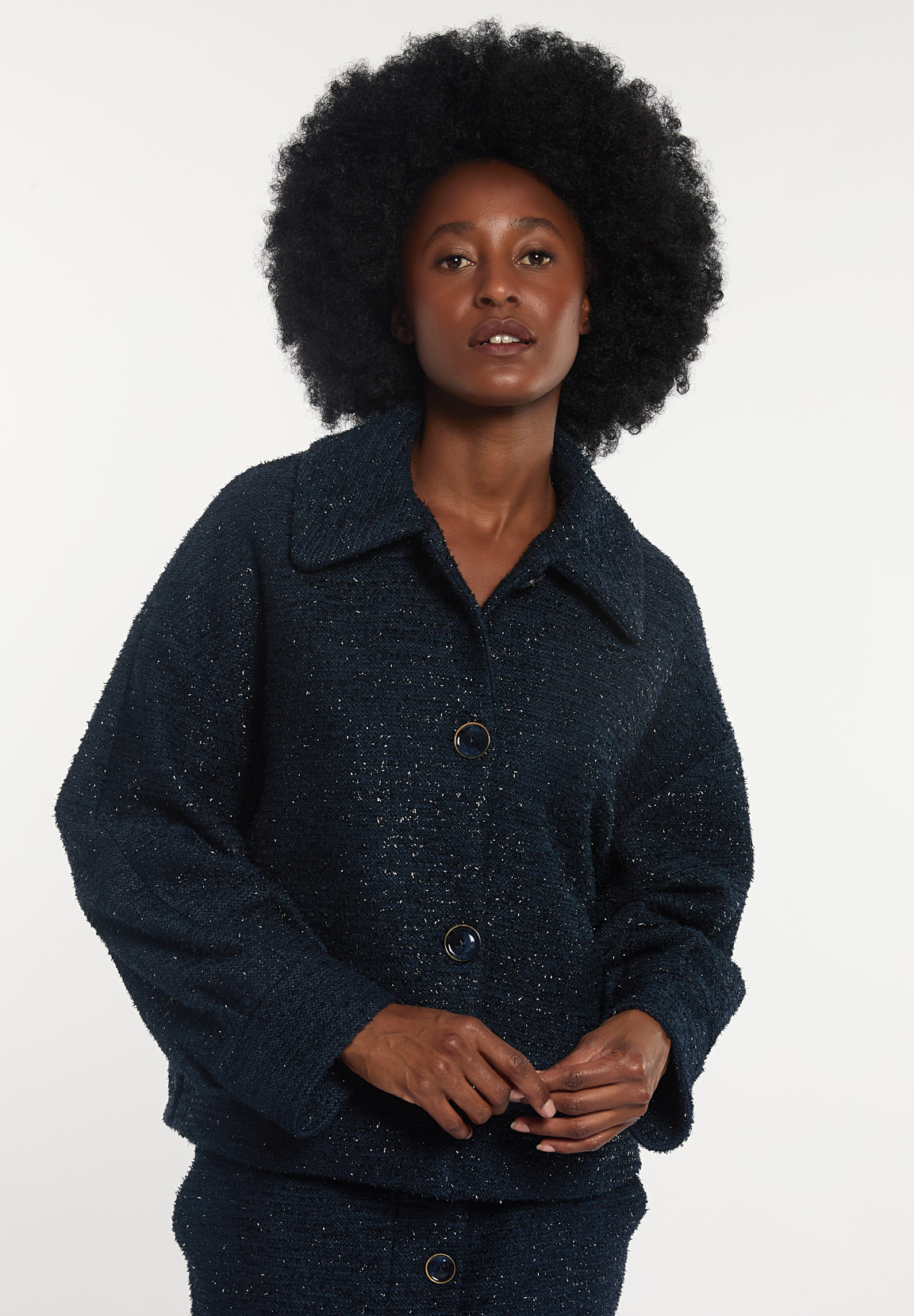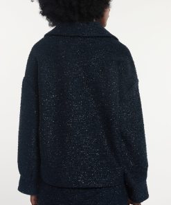 River Woods Women’s Woolen Short Glitter Coat Puffed Sleeves Blue | Blue
